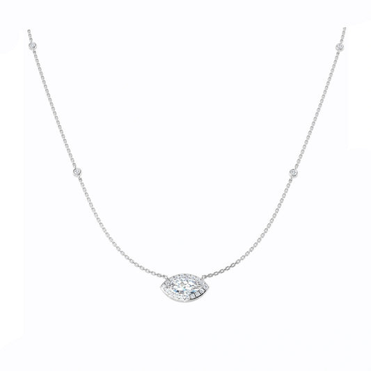 1.60ct Marquise Halo Lab Grown Diamond Station Necklace in 9k Gold