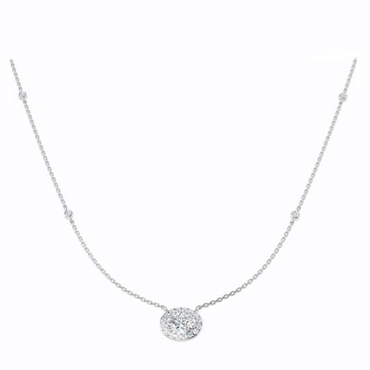 1.50ct Oval Halo Lab Grown Diamond Station Necklace in 9k Gold