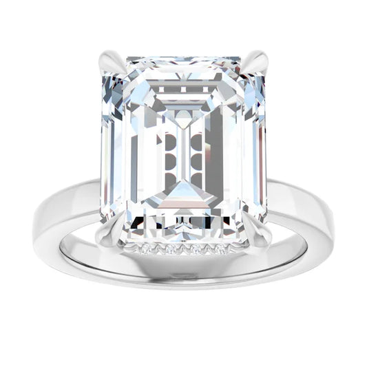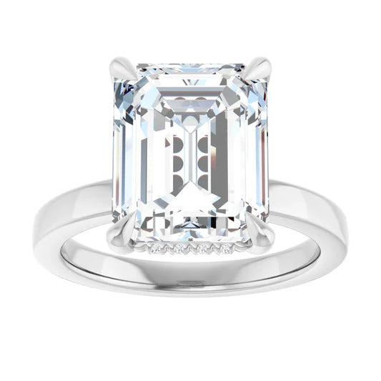 The Clara 5.00ct Emerald cut Lab Grown Diamond Hidden Halo Solitaire Engagement Ring