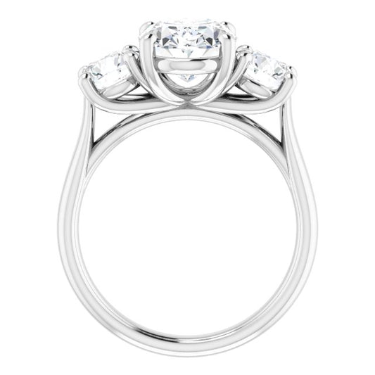 The Elena 3.20ctw Oval and Round cut Lab Grown Diamond Trilogy Engagement Ring