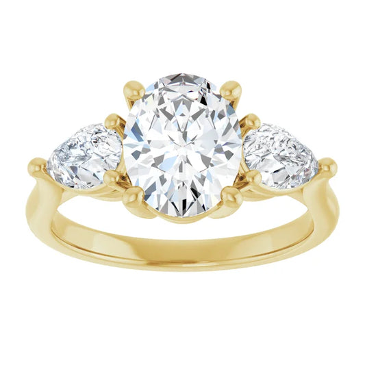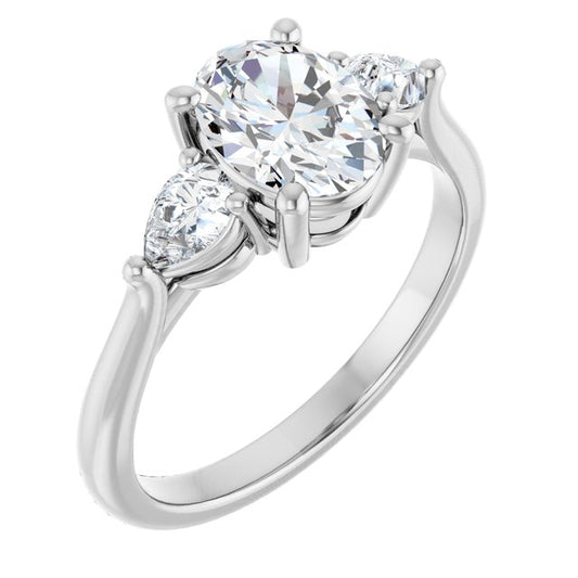 The Ella 3.00ctw Oval and Pear cut Lab Grown Diamond Trilogy Engagement Ring