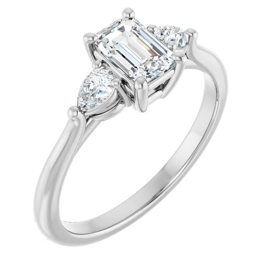 The Ella 1.40ctw Emerald and Pear cut Lab Grown Diamond Trilogy Engagement Ring
