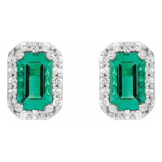 0.60ct Emerald 0.10ct Diamond Halo Earrings in 14k Gold