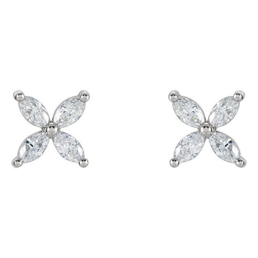 0.75ct Lab Grown Diamond Marquise Floral Earrings in 14k Gold
