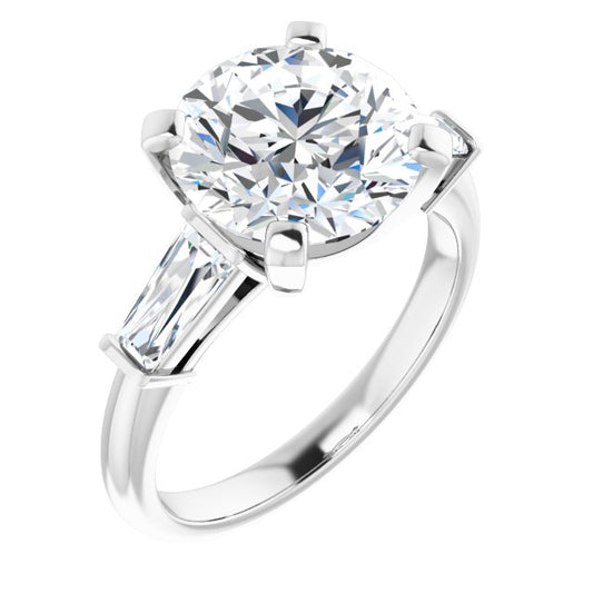 The Cassandra 4.40ctw Round and Baguette cut Lab Grown Diamond Trilogy Engagement Ring
