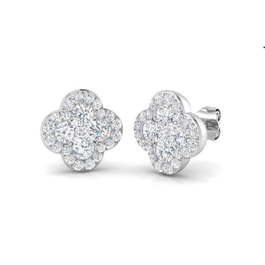 1.60ct Lab Grown Diamond Round Cluster Halo Earrings in 9k Gold
