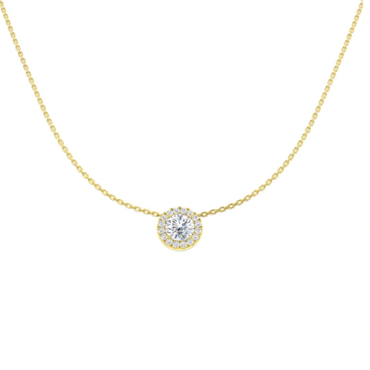 0.67ct Round Halo Lab Grown Diamond Necklace in 9k Gold