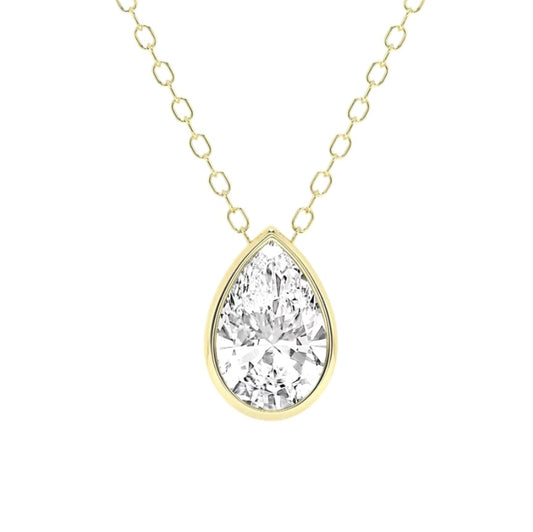 1.00ct Pear cut Lab Grown Diamond Bezel Solitaire Necklace in 14k Gold