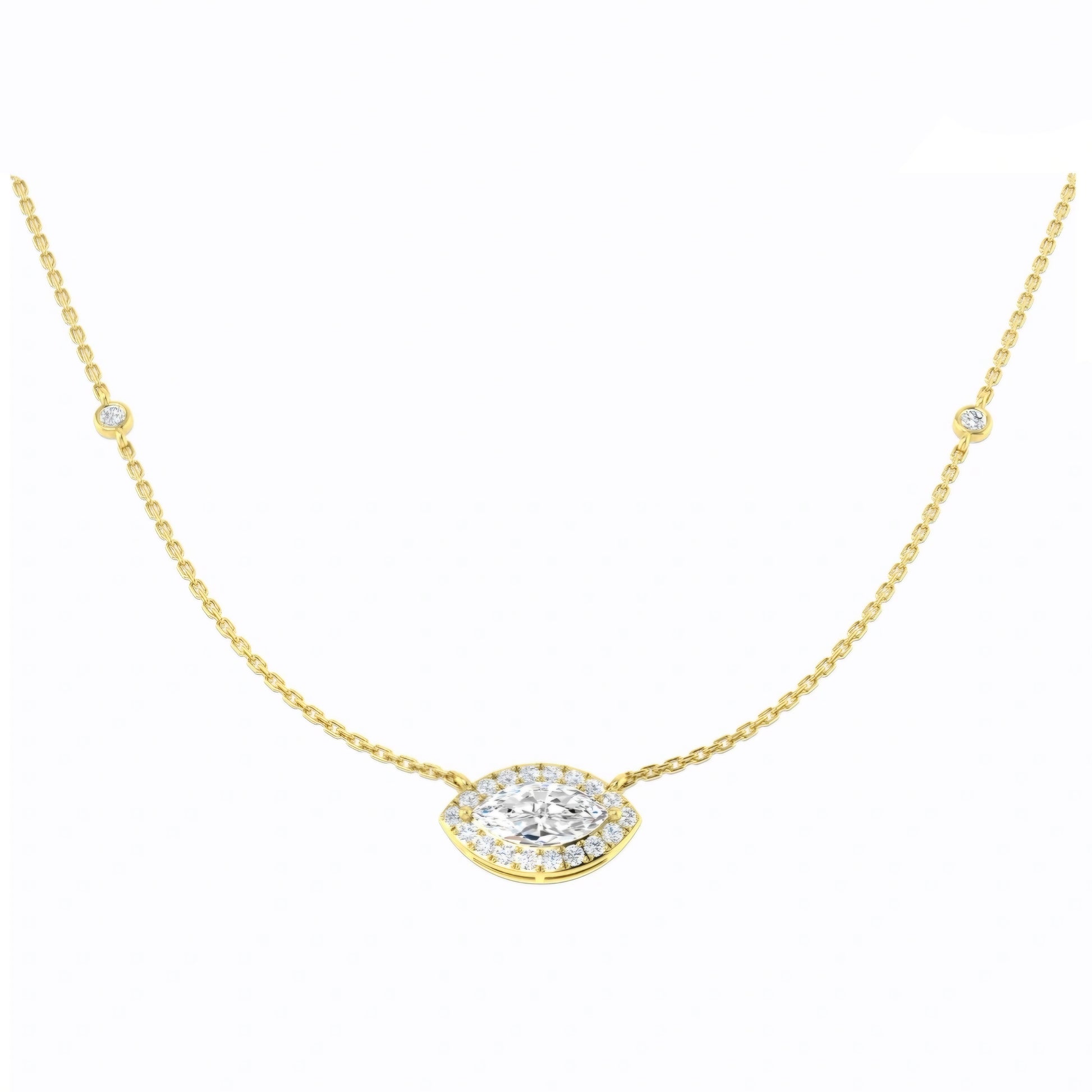 1.60ct Marquise Halo Lab Grown Diamond Station Necklace in 9k Gold