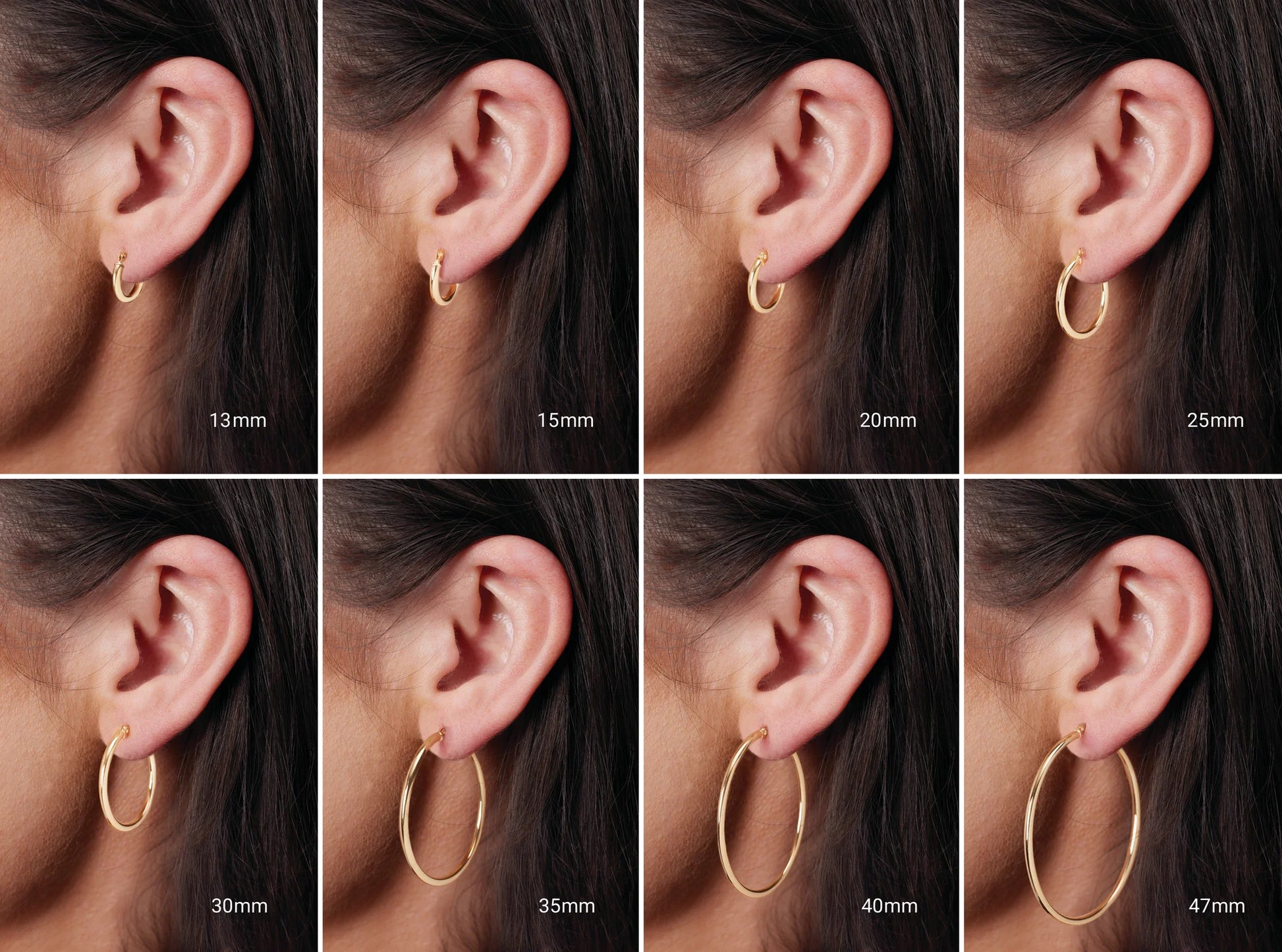 These beautifully crafted 14k gold hoop earrings are very fashionable at the moment and can be paired with any other earring design or worn alone to enhance your outfit. These earrings are 30mm in diameter and 2mm wide.