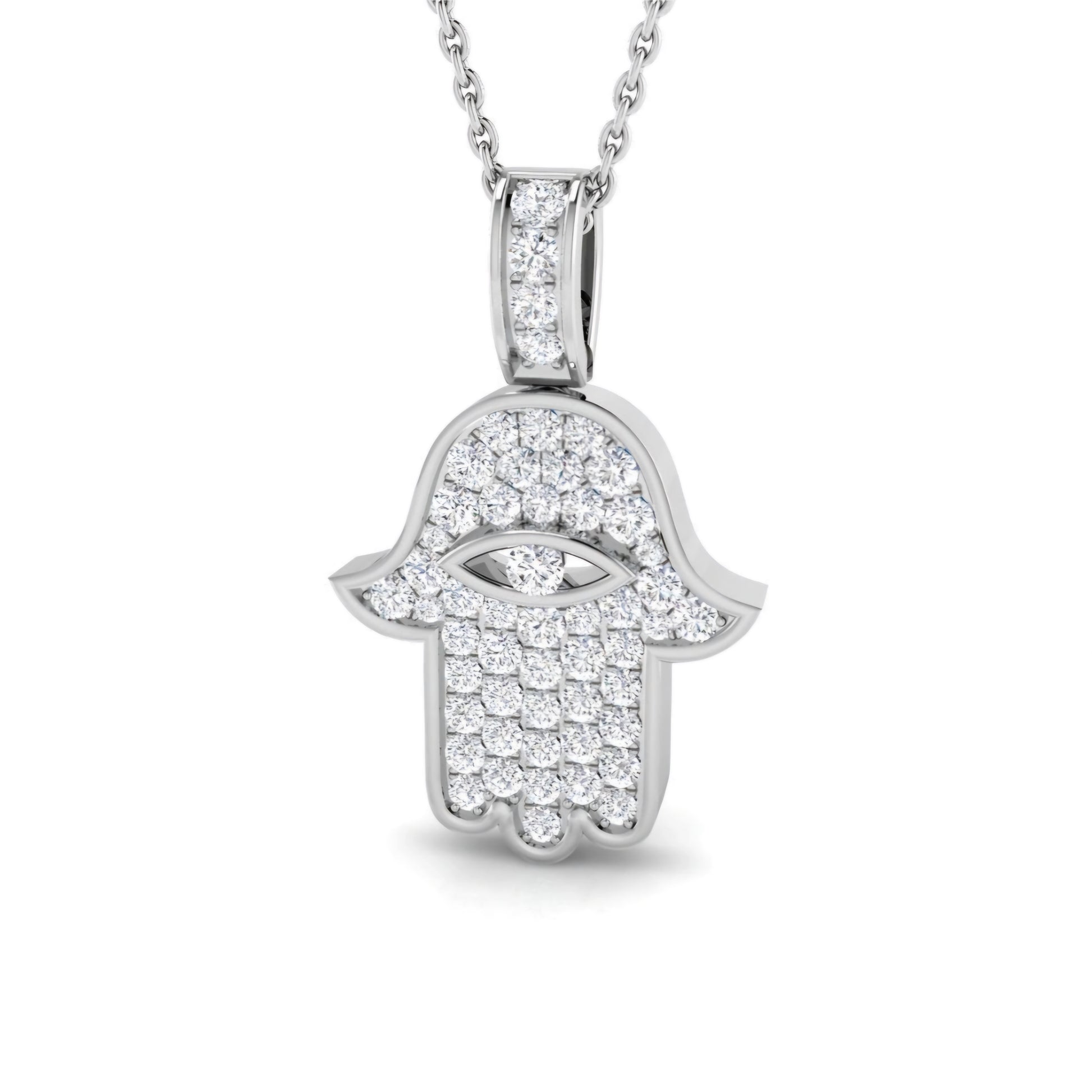 Large Hamza Hand Lab Grown Diamond Necklace in 9k Gold